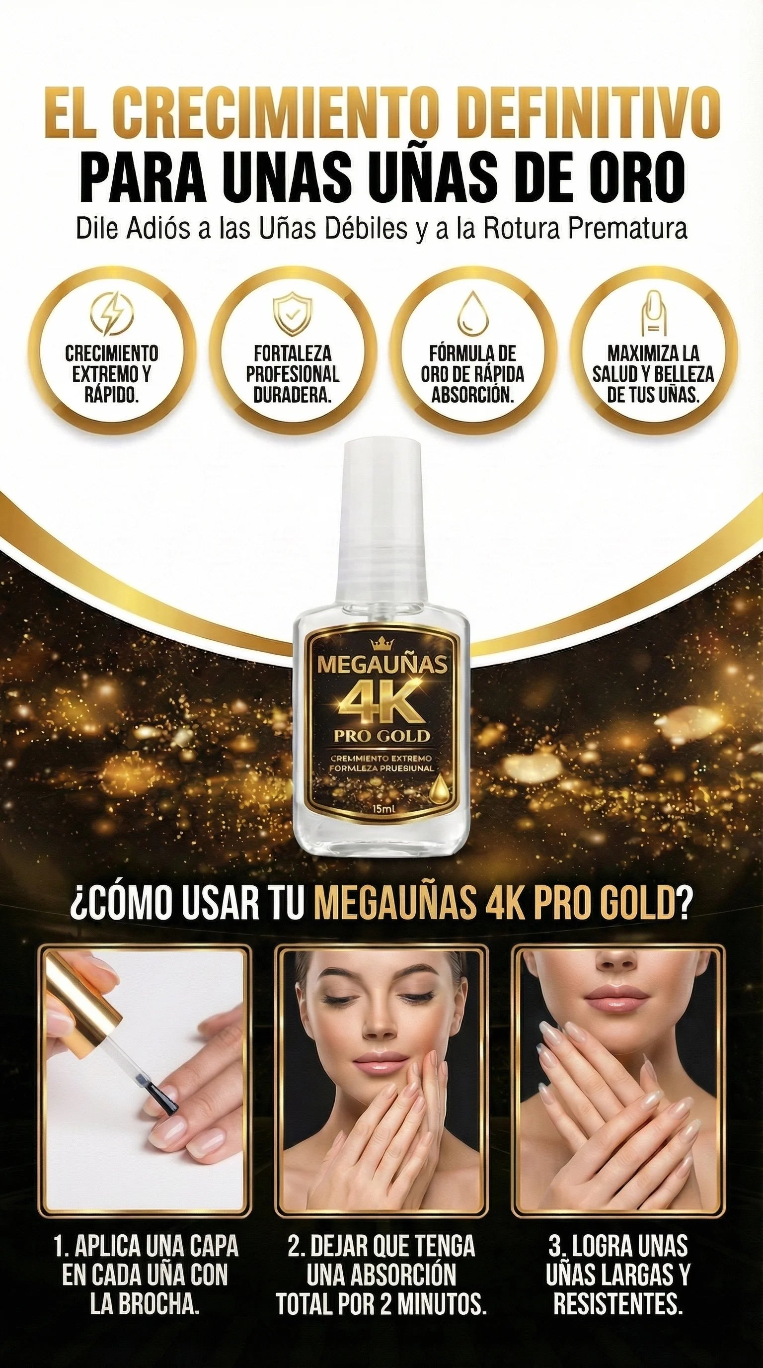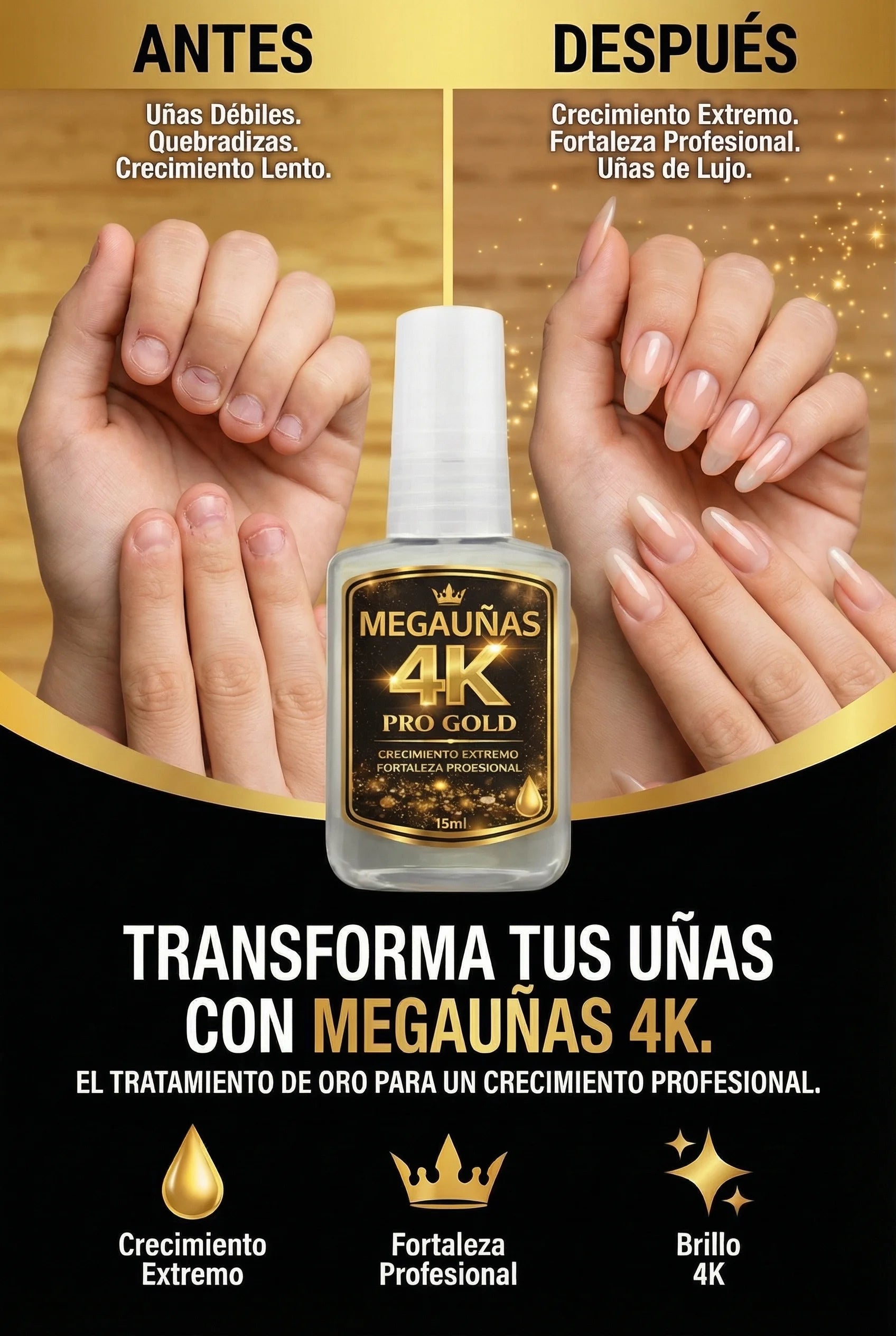 Muchas personas notan mejoras desde las primeras semanas de uso constante. El crecimiento y la fortaleza dependen de la constancia y del estado inicial de la uña.